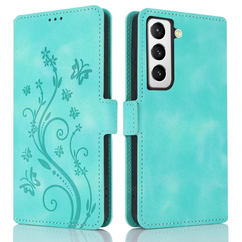 For Samsung Galaxy S22 5G Dreamy Butterfly Love Flower Embossed Leather Phone Case(Green)