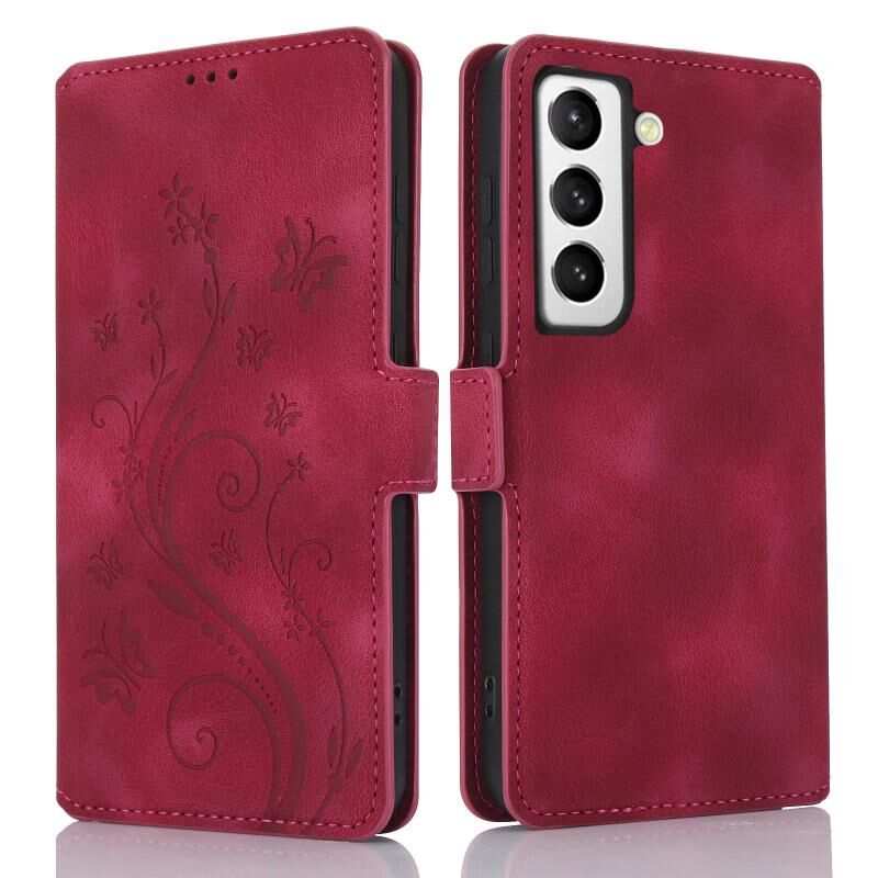 Θήκη τηλεφώνου Samsung Galaxy S22+ 5G από δέρμα με ανάγλυφο σχέδιο πεταλούδας, λουλουδιών και ονειρικό μοτίβο (Μωβ)
