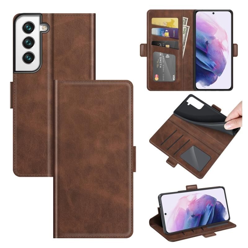Για Samsung Galaxy S22 5G διπλής όψης μαγνητική αγκράφα οριζόντια Flip δερμάτινη θήκη με θήκη & υποδοχές για κάρτες & πορτοφόλι (καφέ)