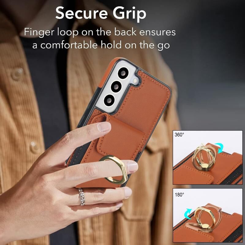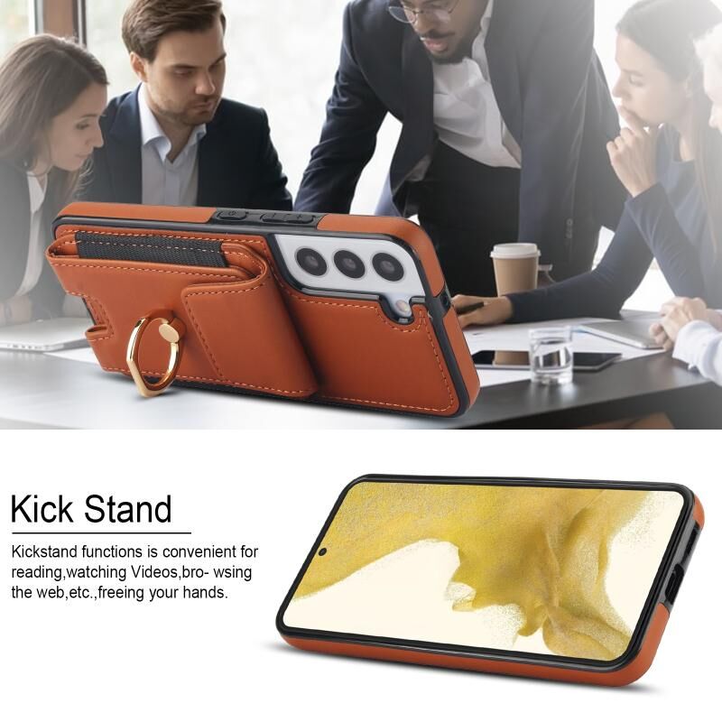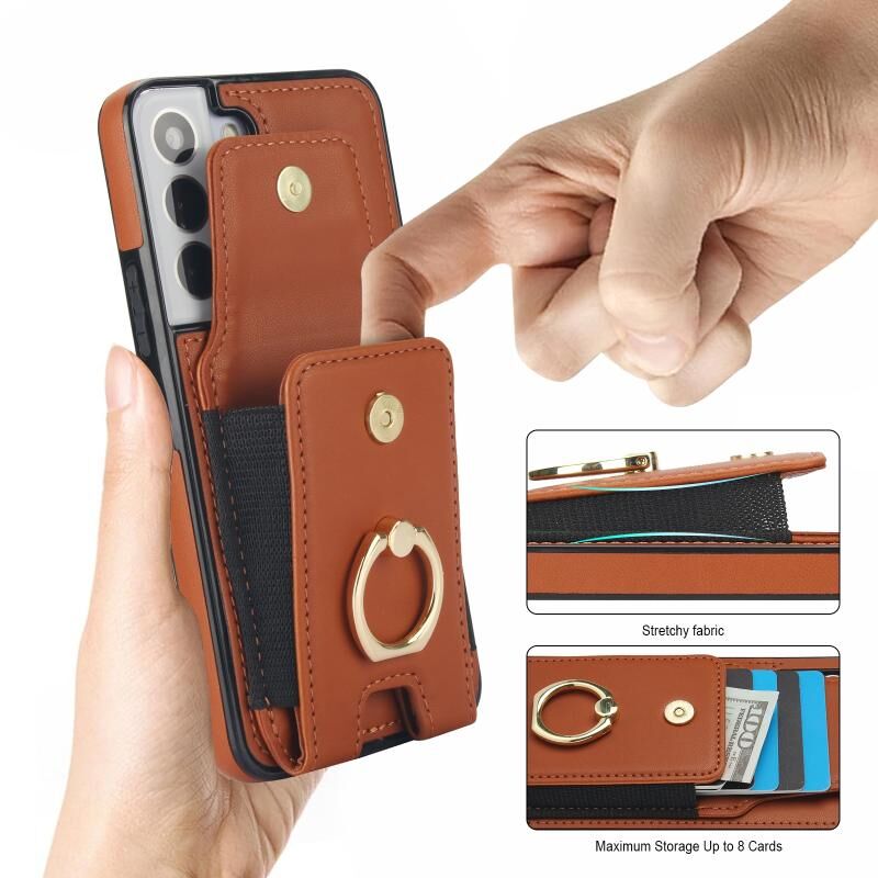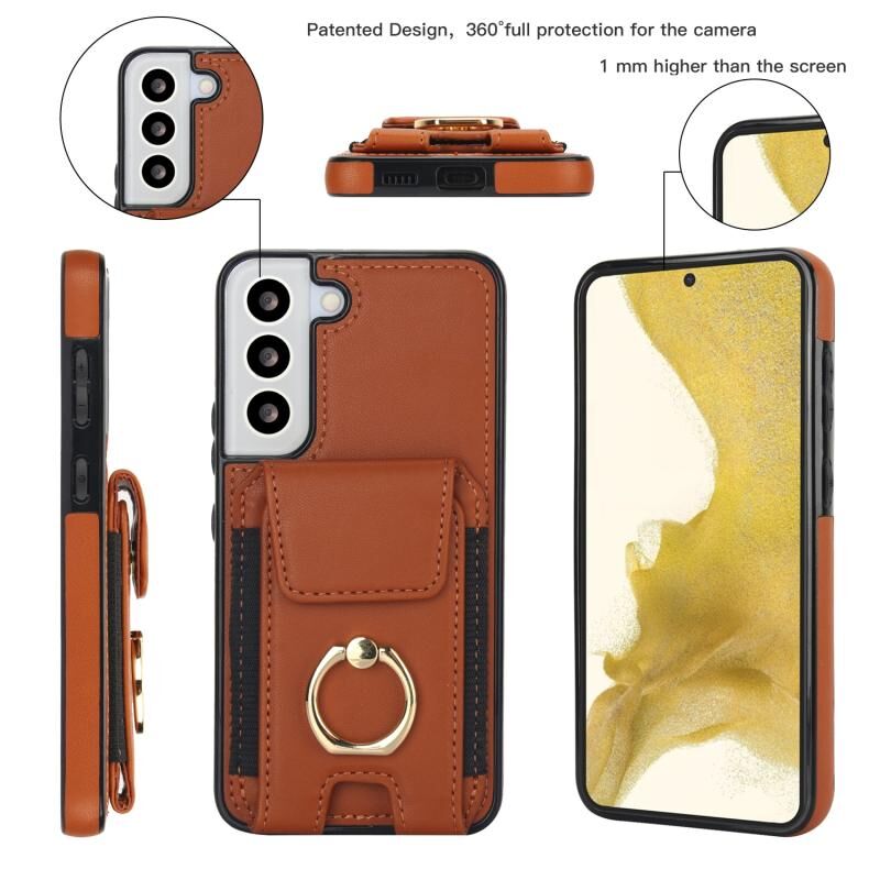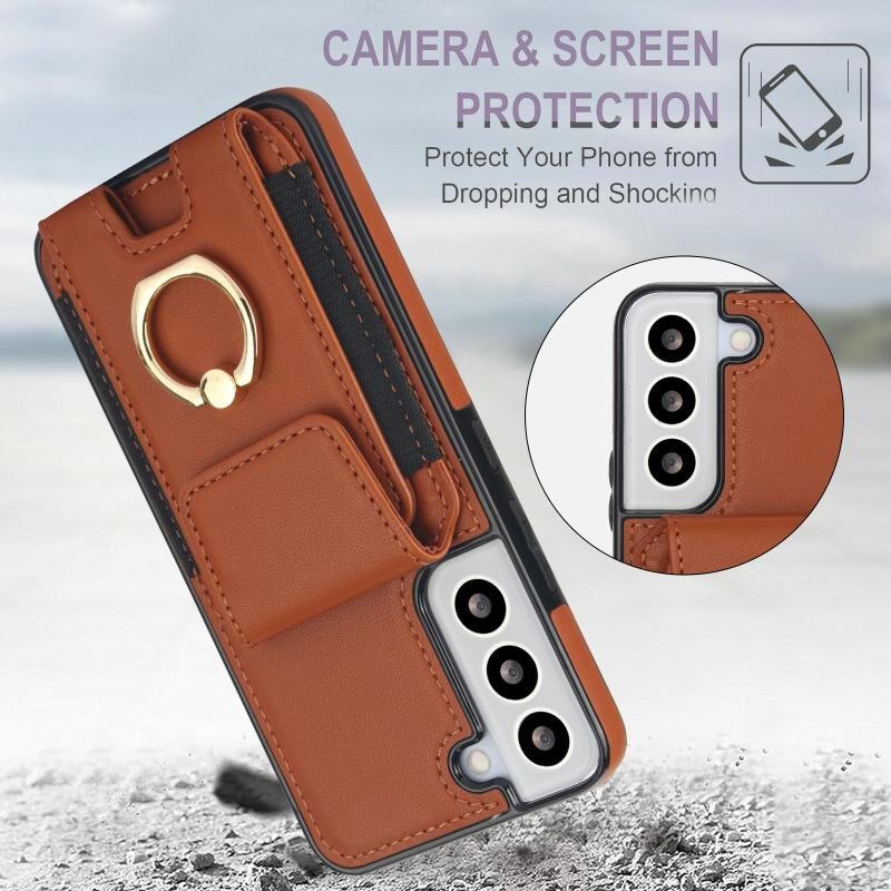 Για Samsung Galaxy S22 5G Ελαστική κάρτα τσάντα δαχτυλίδι τσάντα κάτοχος υπόθεση τηλεφώνου (καφέ)
