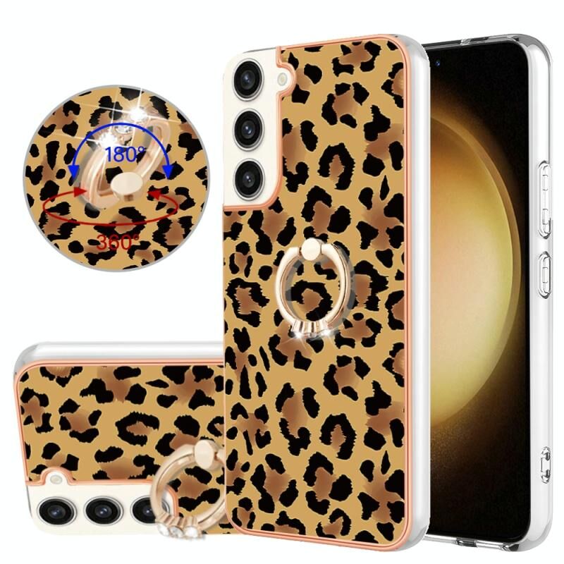 For Samsung Galaxy S22+ 5G Electroplating Dual-side IMD Phone Case with Ring Holder(Leopard Print)