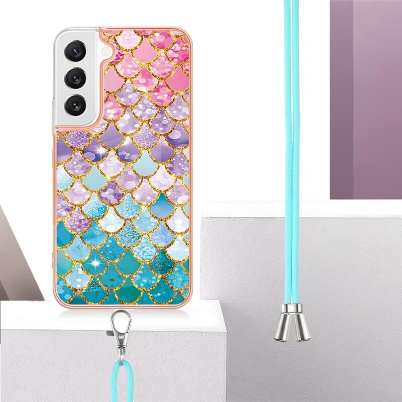 Θήκη τηλεφώνου Samsung Galaxy S22+ 5G με επιμετάλλωση IMD TPU με κορδόνι (Πολύχρωμες Λέπια)