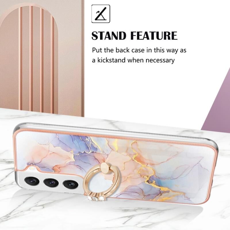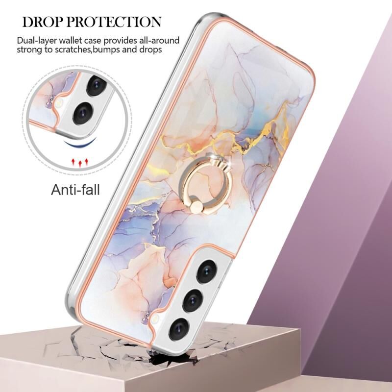 Θήκη κινητού τηλεφώνου Samsung Galaxy S22+ 5G με δακτύλιο, από TPU με ηλεκτρολυτική επιμετάλλωση IMD (Λευκό Μάρμαρο)