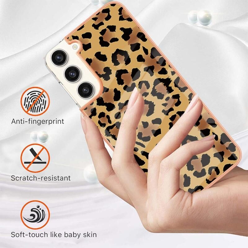 Θήκη τηλεφώνου για Samsung Galaxy S22+ 5G με ηλεκτρολυτική μαρμάρινη όψη IMD διπλής όψης (εκτύπωση λεοπάρδαλης)
