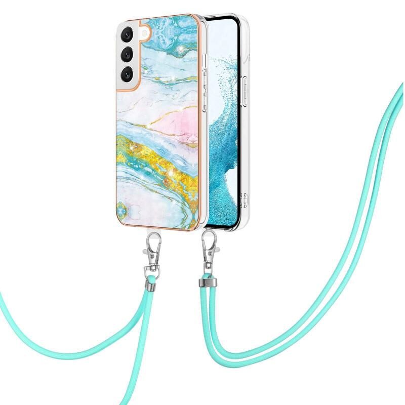 Θήκη κινητού τηλεφώνου Samsung Galaxy S22+ 5G με επιμετάλλωση, σχέδιο μάρμαρου IMD, από TPU με κορδόνι (Μωβ 002)