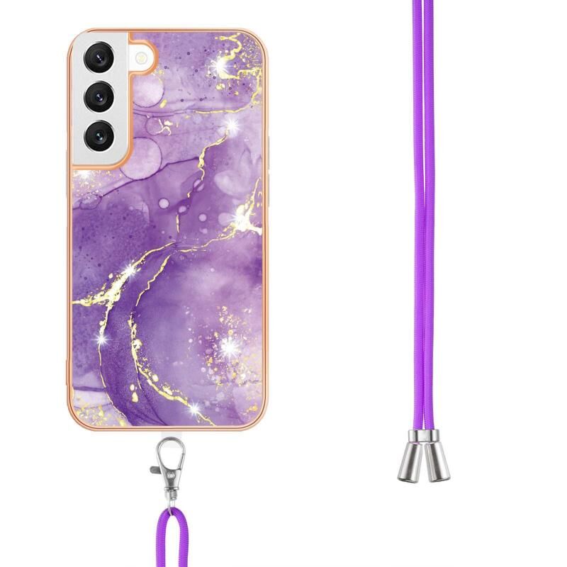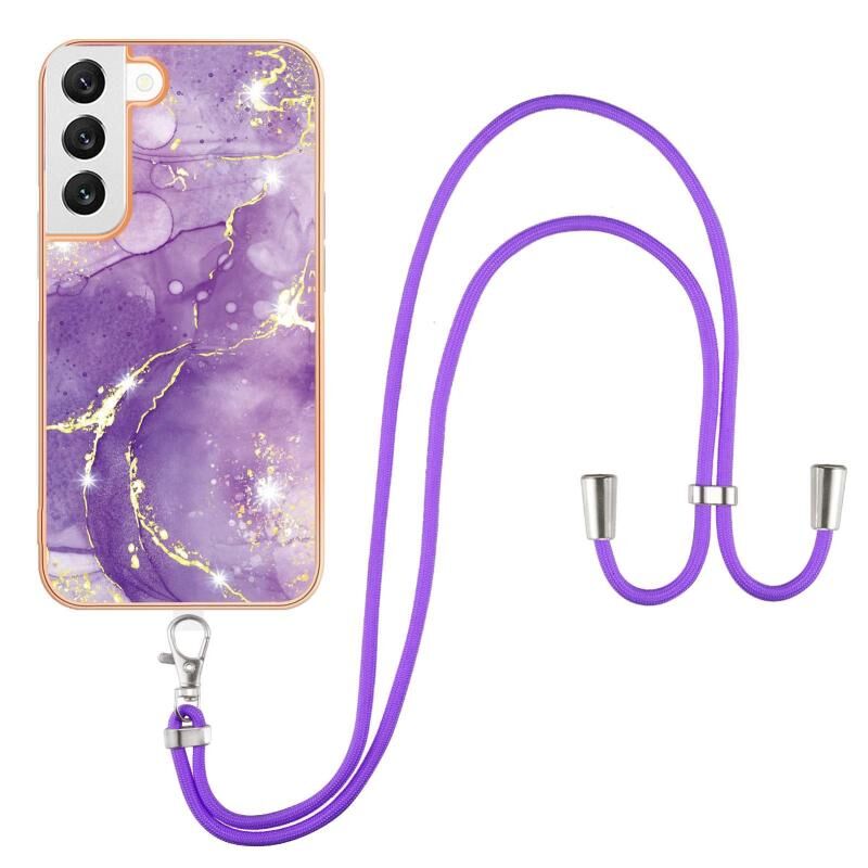 Θήκη κινητού τηλεφώνου Samsung Galaxy S22+ 5G με επιμετάλλωση, σχέδιο μάρμαρου IMD, από TPU με κορδόνι (Μωβ 002)