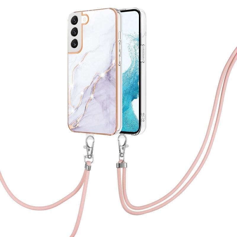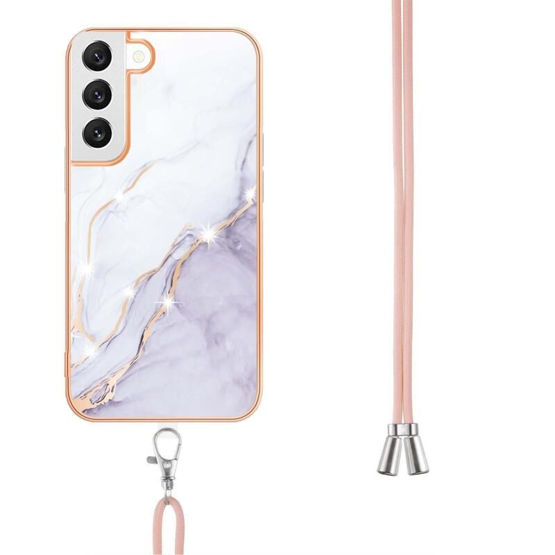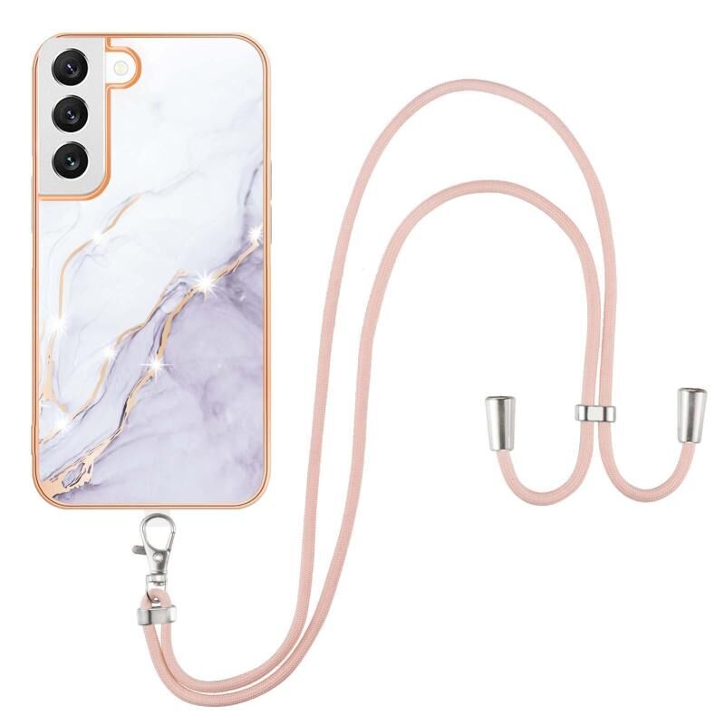 Θήκη κινητού τηλεφώνου Samsung Galaxy S22+ 5G με επιμετάλλωση, σχέδιο μάρμαρου IMD, από TPU με κορδόνι (Μωβ 002)