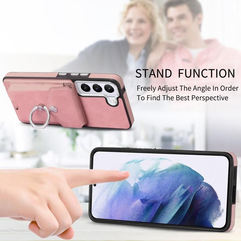 Για Samsung Galaxy S22 5G Electroplating Skin-feel δέρμα δαχτυλίδι κάρτα πορτοφόλι υπόθεση τηλεφώνου (ροζ)