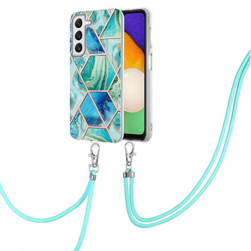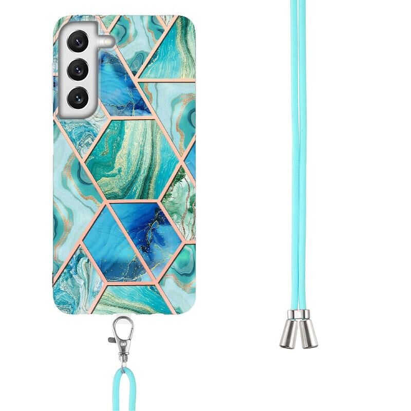 Θήκη κινητού τηλεφώνου Samsung Galaxy S22 5G με γαλβανισμό, συνδυασμό μαρμάρου και TPU με κορδόνι (Σκούρο Μωβ)