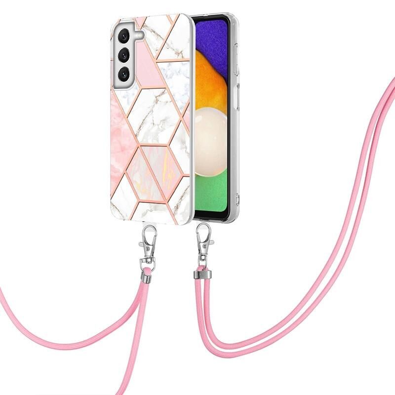 Θήκη τηλεφώνου TPU με γαλβανισμό και μαρμάρινη σύνθεση για Samsung Galaxy S22+ 5G με κορδόνι (Ανοιχτό Μωβ)