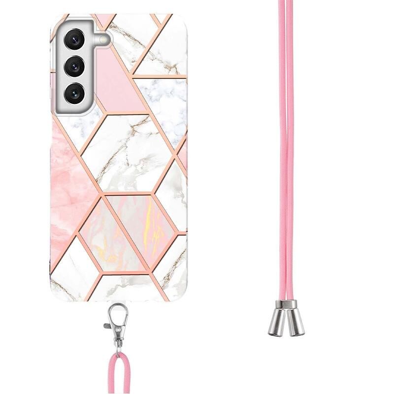 Θήκη κινητού τηλεφώνου Samsung Galaxy S22 5G με γαλβανισμό, συνδυασμό μαρμάρου και TPU με κορδόνι (Σκούρο Μωβ)