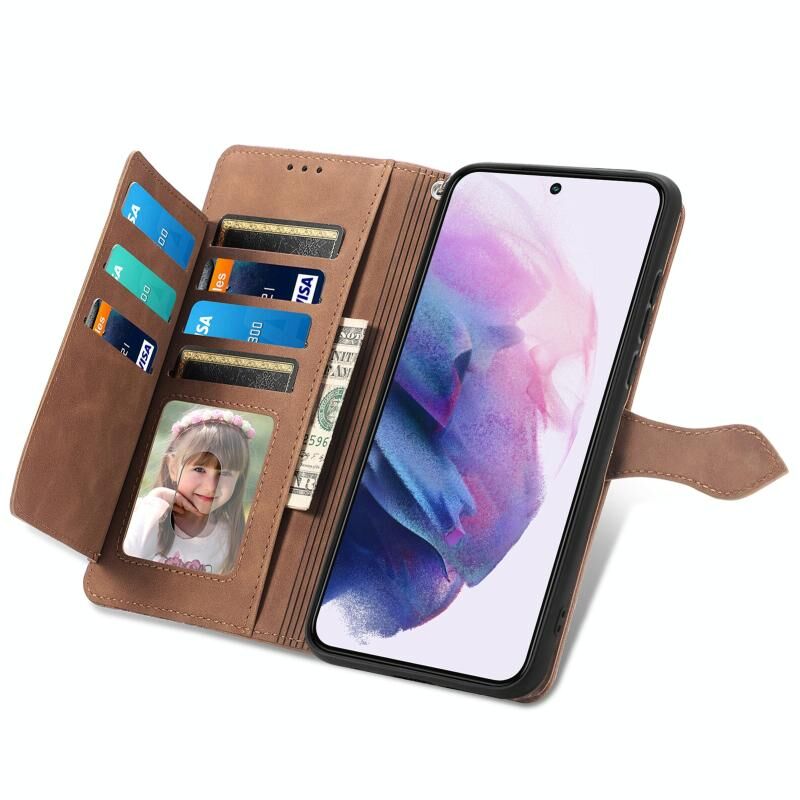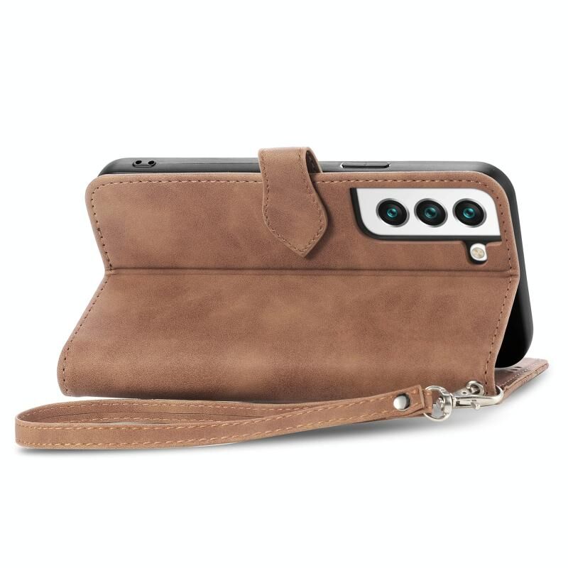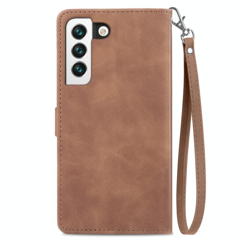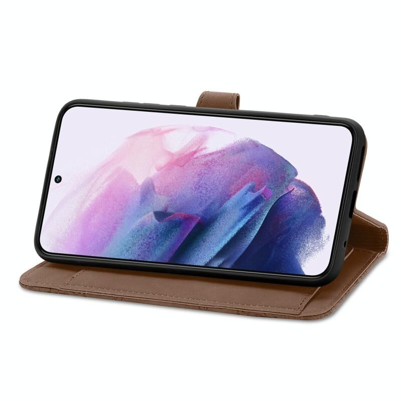 Για Samsung Galaxy S22 5G ανάγλυφο λουλούδι Shockproof δέρμα τηλέφωνο υπόθεση (καφέ)
