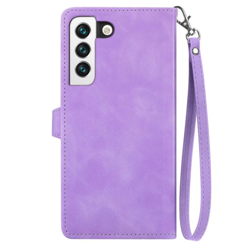 Για Samsung Galaxy S22 5G ανάγλυφο λουλούδι Shockproof δέρμα τηλέφωνο υπόθεση (μωβ)