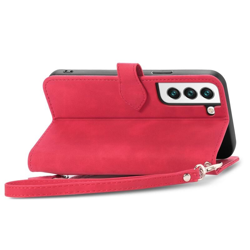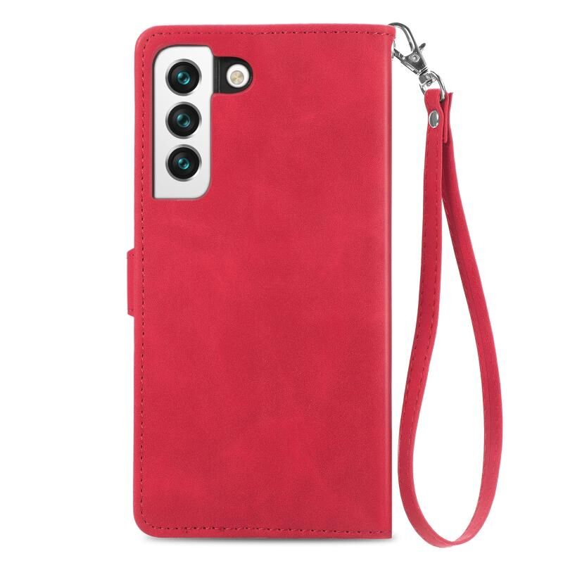 Για Samsung Galaxy S22 5G ανάγλυφο λουλούδι Shockproof δέρμα τηλέφωνο υπόθεση (κόκκινο)