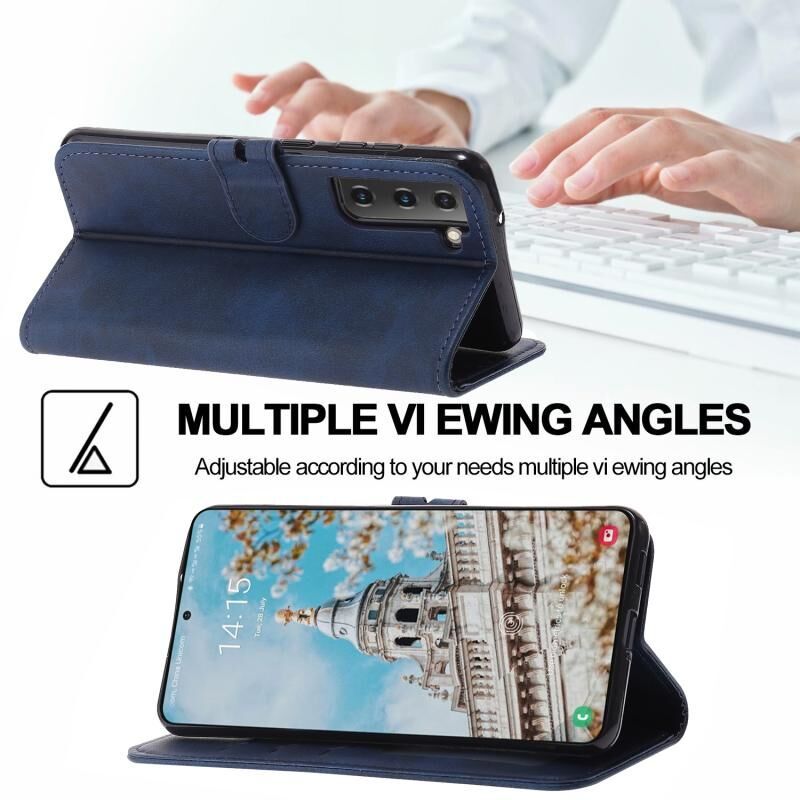 Θήκη τηλεφώνου Samsung Galaxy S22+ 5G, δερμάτινη, οριζόντια, με ανάγλυφο σχέδιο χαρούμενης γάτας (Μαύρο)