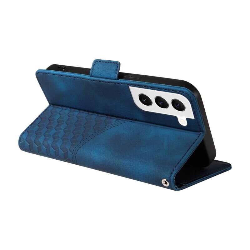 Για Samsung Galaxy S22+ 5G ανάγλυφο ρόμβος αστερόεσσα δερμάτινη θήκη τηλεφώνου (μπλε)