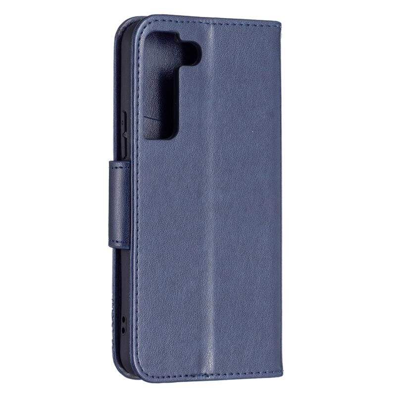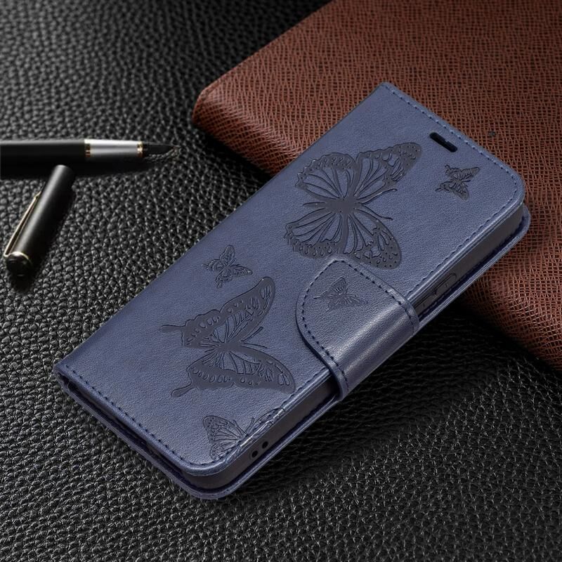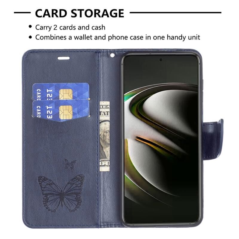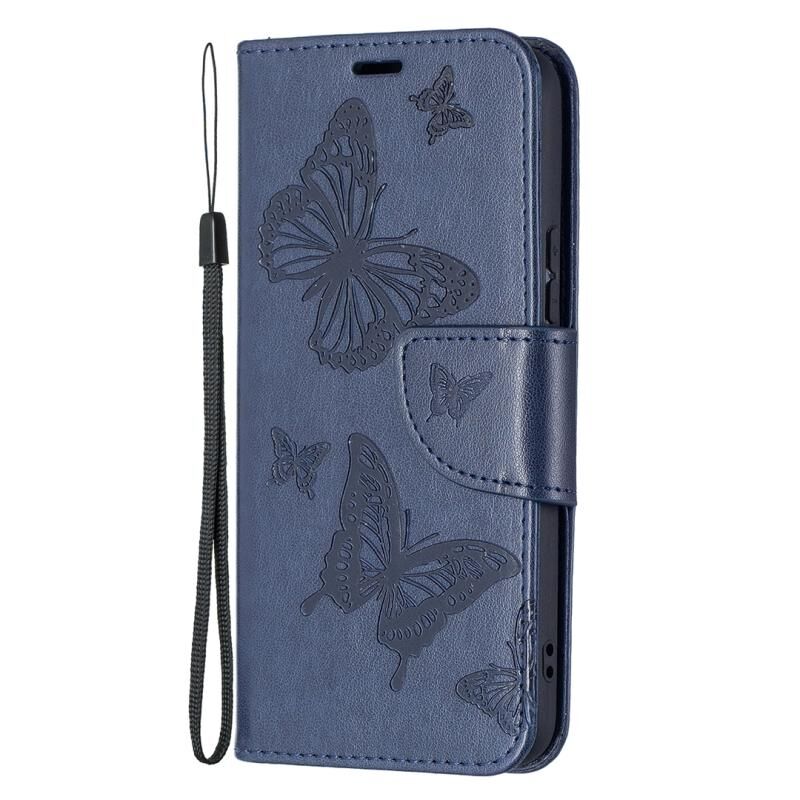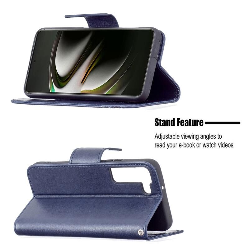 Θήκη τηλεφώνου δερμάτινη με ανάγλυφο σχέδιο δύο πεταλούδων για Samsung Galaxy S22 5G, με βάση στήριξης, θήκη καρτών, πορτοφόλι και λουρί (Μωβ)