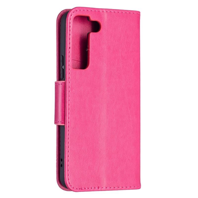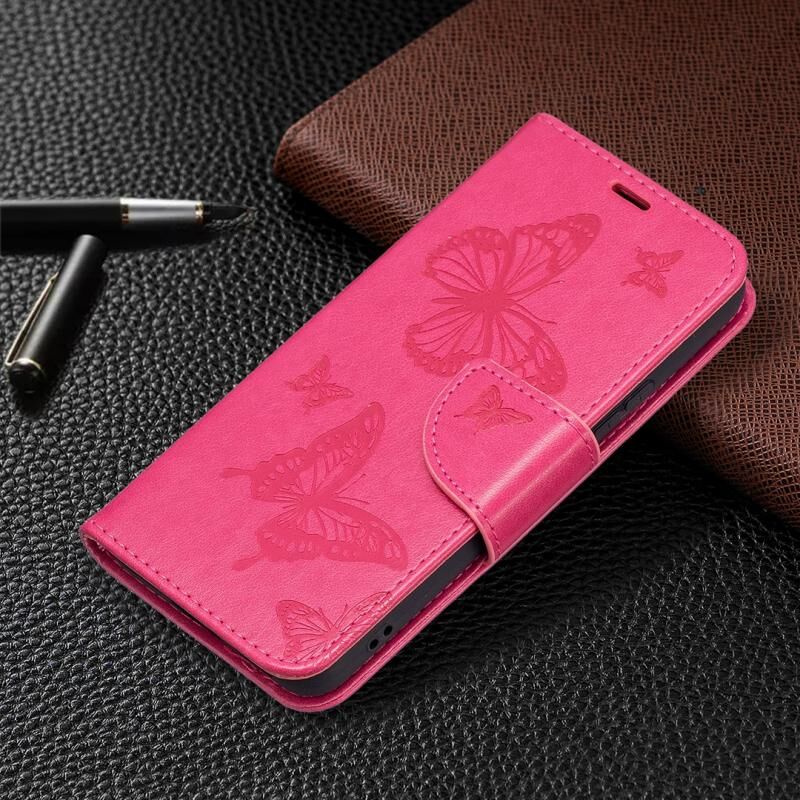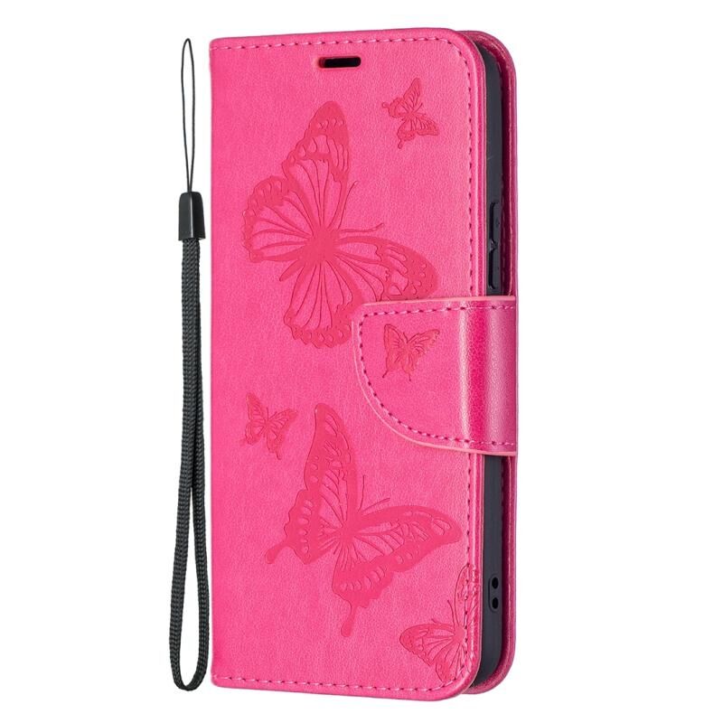 Θήκη τηλεφώνου δερμάτινη με ανάγλυφο σχέδιο δύο πεταλούδων για Samsung Galaxy S22 5G, με βάση στήριξης, θήκη καρτών, πορτοφόλι και λουρί (Μωβ)