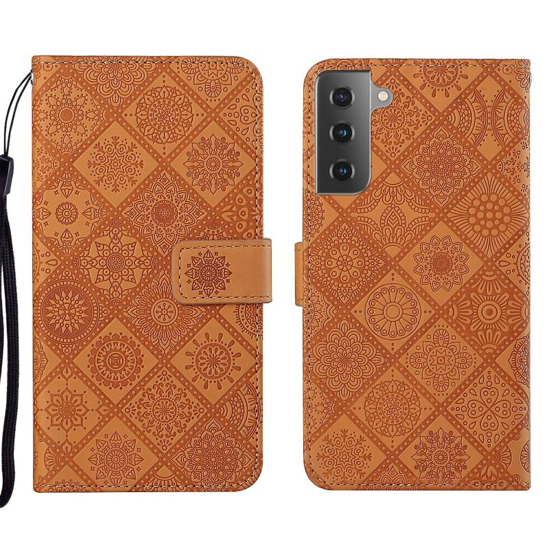 For Samsung Galaxy S22+ 5G Ethnic Style Embossed Pattern Leather Phone Case(Brown)