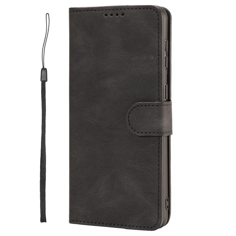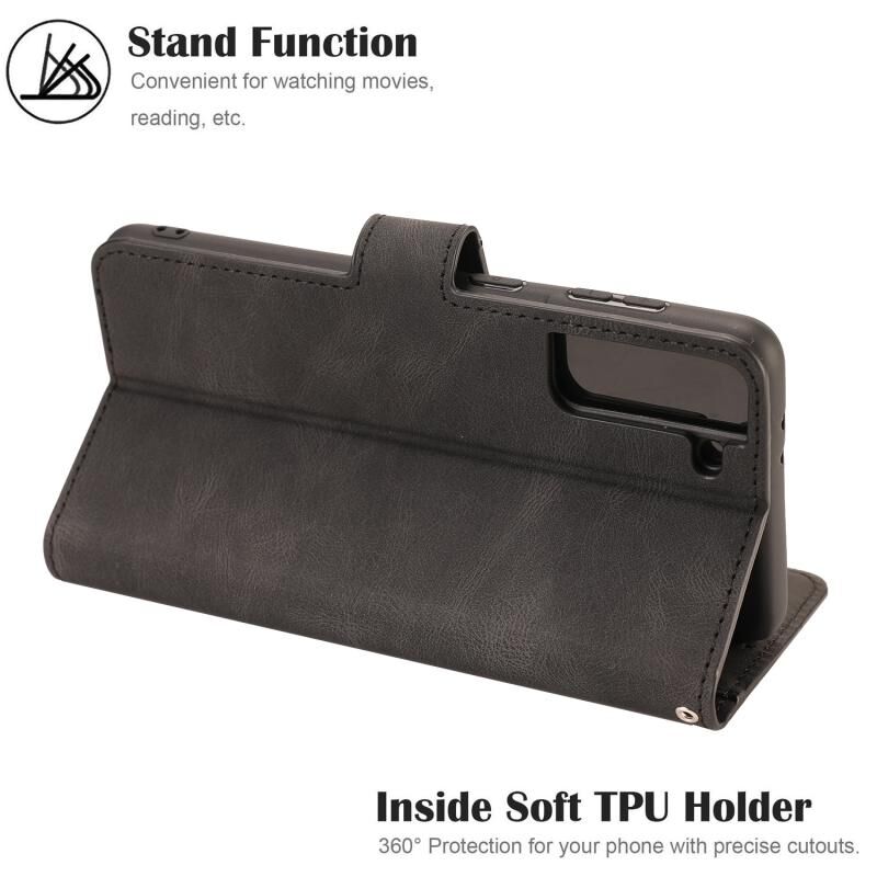 Για Samsung Galaxy S22+ 5G Φαντασία Κλασσικό δέρμα-feel Calfskin υφή μαγνητική πόρπη οριζόντια Flip PU τηλέφωνο δερμάτινη θήκη με κάτοχο & υποδοχή κάρτας & πορτοφόλι (μαύρο)
