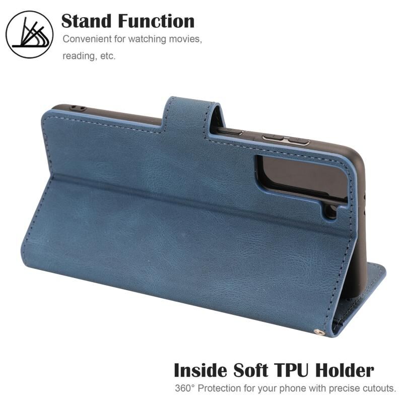 Για Samsung Galaxy S22 5G Φαντασία Κλασικό δέρμα-feel Calfskin υφή μαγνητική πόρπη οριζόντια Flip PU τηλέφωνο δερμάτινη θήκη με κάτοχο & υποδοχή κάρτας & πορτοφόλι (μπλε)