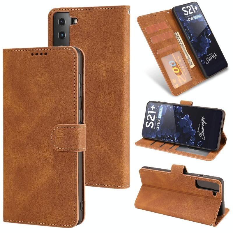 Για Samsung Galaxy S22 5G Φαντασία Κλασσικό δέρμα-feel Calfskin υφή μαγνητική πόρπη οριζόντια Flip PU τηλέφωνο δερμάτινη θήκη με κάτοχο & υποδοχή κάρτας & πορτοφόλι (καφέ)