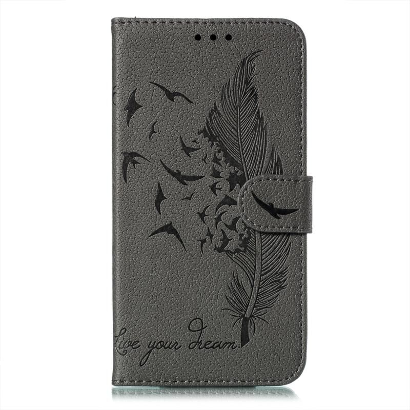 Για Samsung Galaxy S22 + 5G φτερό μοτίβο Litchi Υφή δερμάτινη θήκη τηλεφώνου με θήκη & υποδοχές για κάρτες & πορτοφόλι (γκρι)