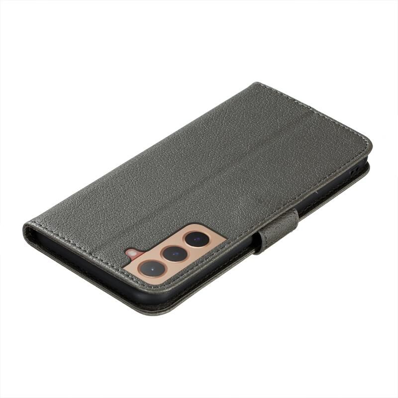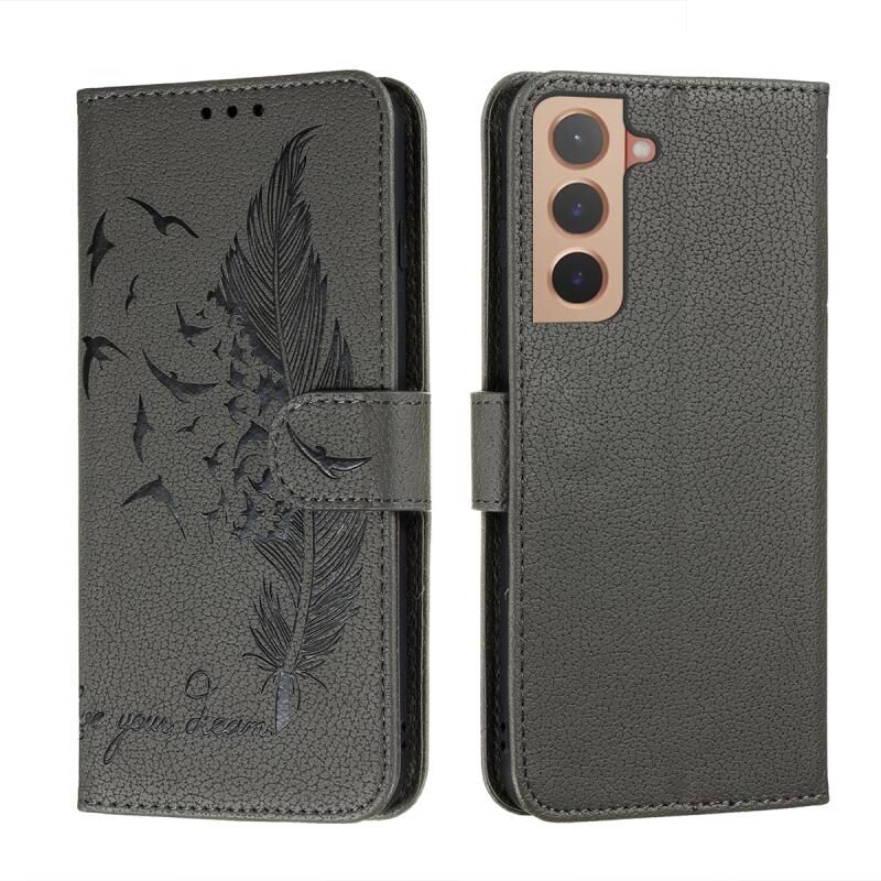 Για Samsung Galaxy S22 5G φτερό μοτίβο Litchi Υφή δερμάτινη θήκη τηλεφώνου με θήκη & υποδοχές για κάρτες & πορτοφόλι (γκρι)
