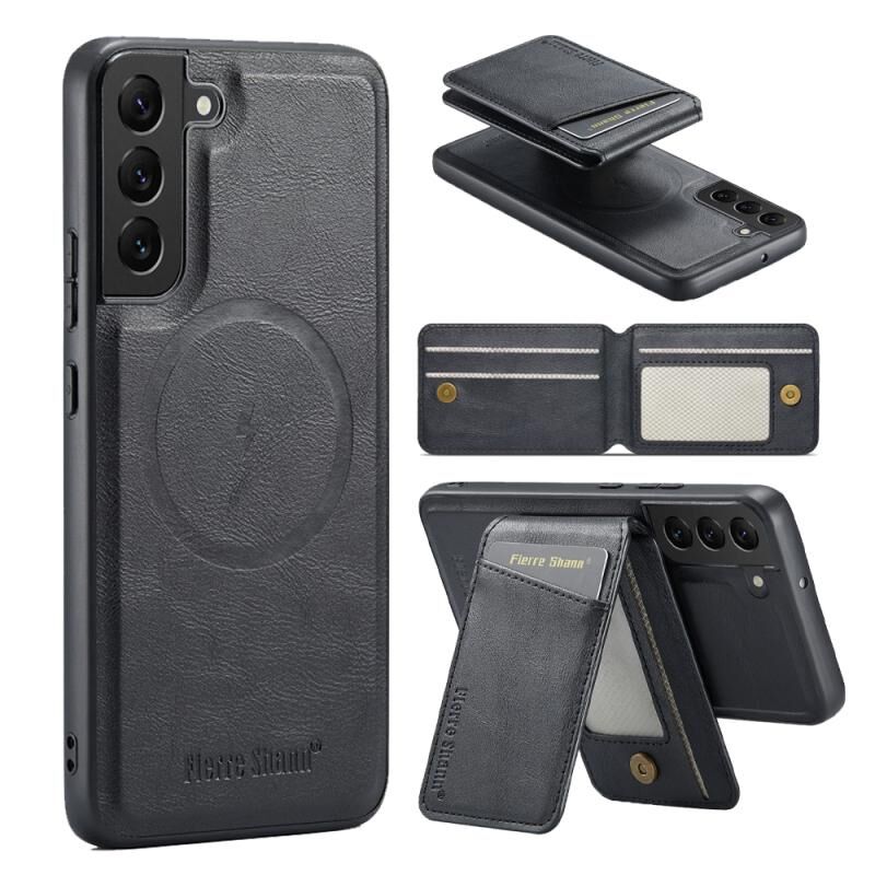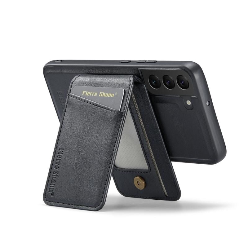 For Samsung Galaxy S22 5G Fierre Shann Cowhide Vertical Flip Magnetic Card Holder Phone Case(Black) (FIERRE SHANN)
