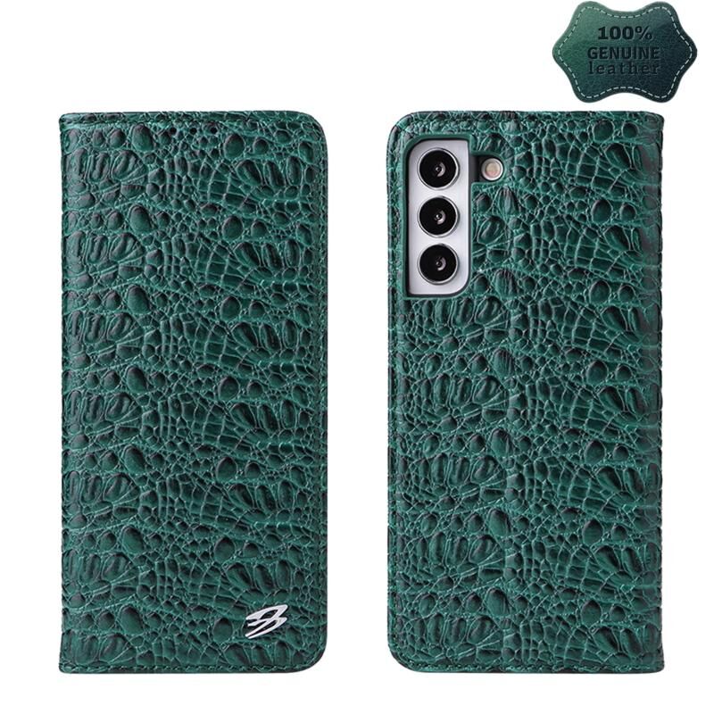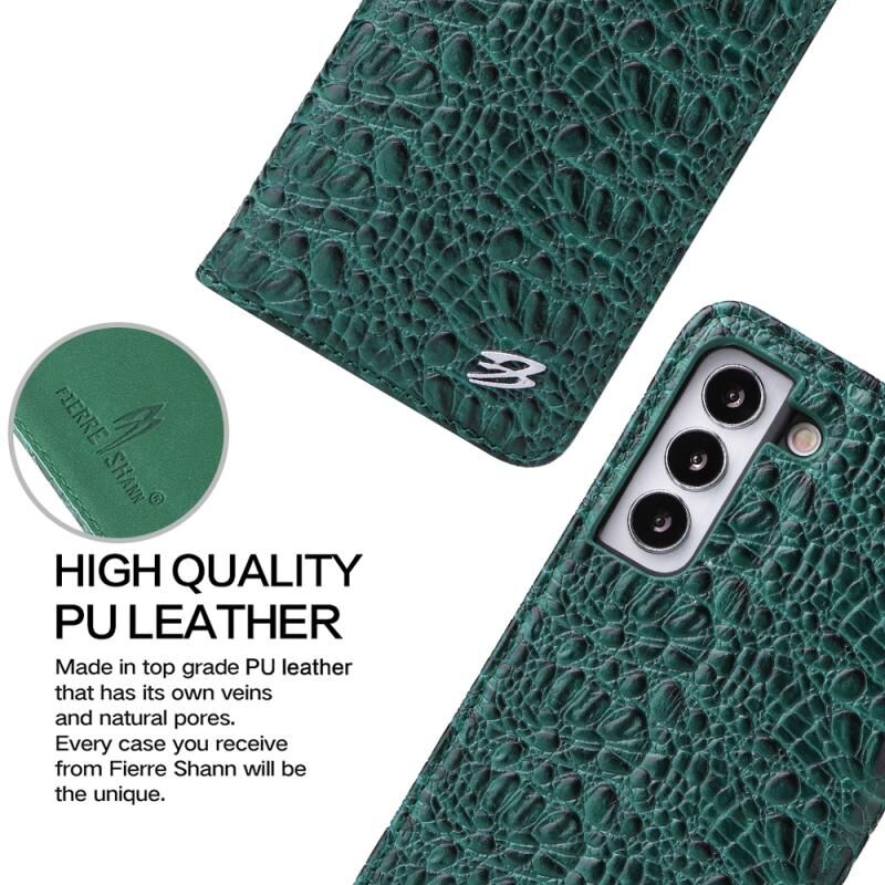 Θήκη κινητού τηλεφώνου Samsung Galaxy S22 5G Fierre Shann με μαγνητικό κούμπωμα, από γνήσιο δέρμα με υφή κροκόδειλου (Μαύρο) (FIERRE SHANN)