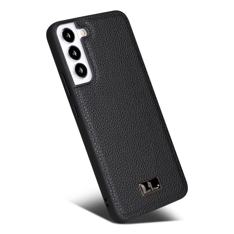 Θήκη κινητού τηλεφώνου Samsung Galaxy S22 5G Fierre Shann με υφή δέρματος (Μαύρο Λυτσί) (FIERRE SHANN)
