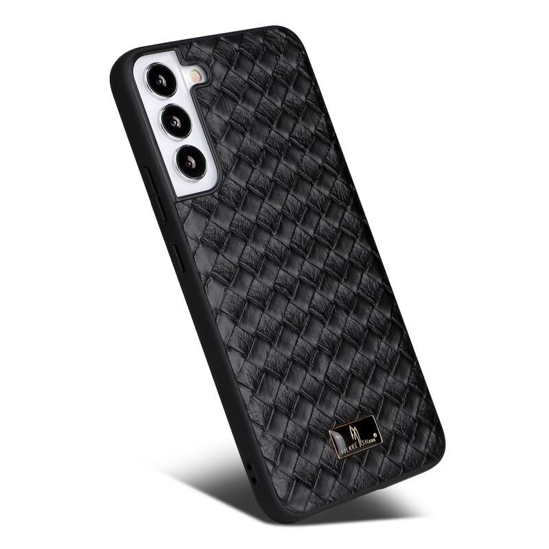 For Samsung Galaxy S22 5G Fierre Shann Leather Texture Phone Back Cover Case(Woven Black) (FIERRE SHANN)