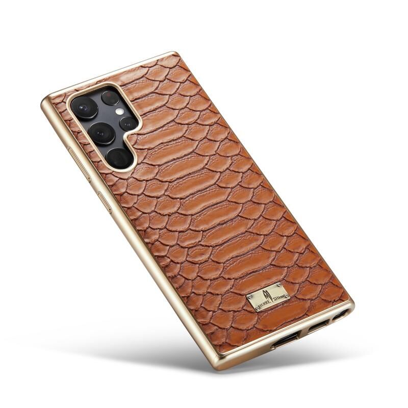 Θήκη κινητού τηλεφώνου Samsung Galaxy S22+ 5G Fierre Shann Python Texture Electroplating PU (Καφέ) (FIERRE SHANN)