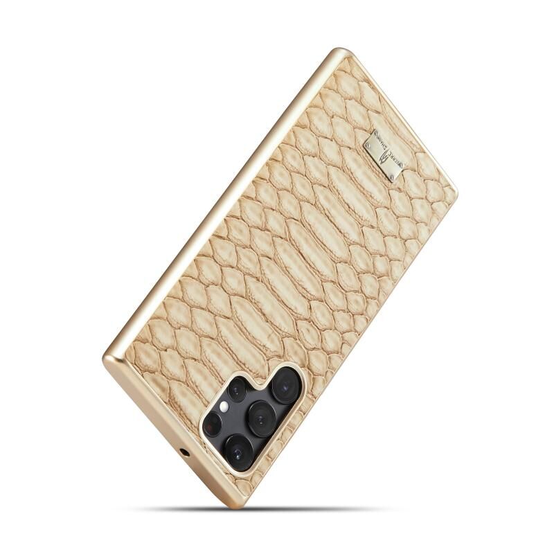 Θήκη κινητού τηλεφώνου Samsung Galaxy S22 5G Fierre Shann με υφή Python, επιμετάλλωση PU (Καφέ) (FIERRE SHANN)