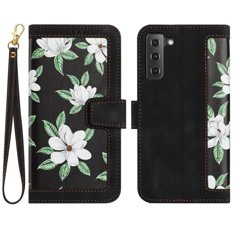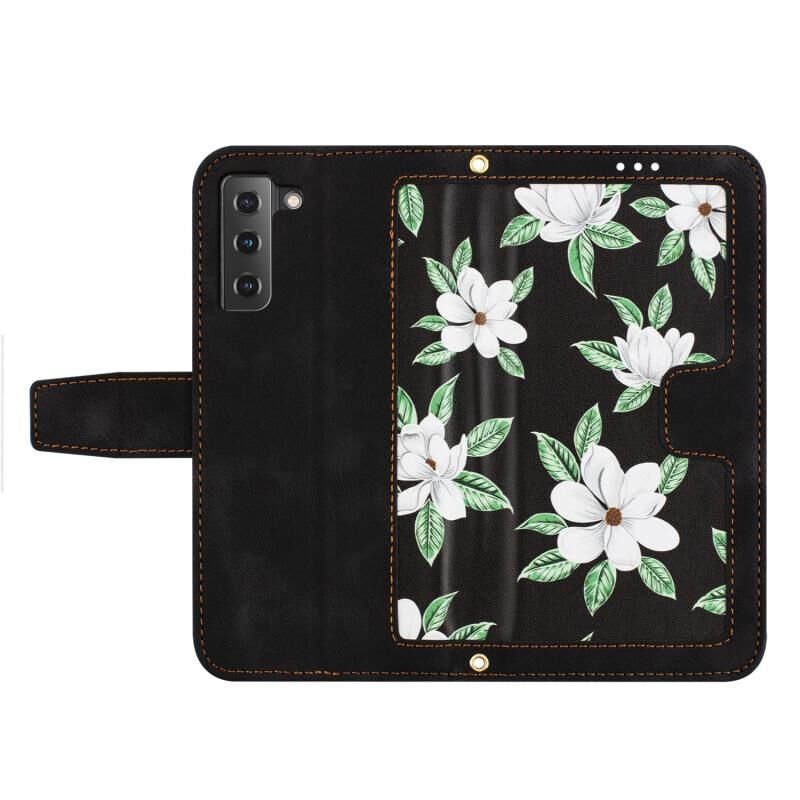 Θήκη τηλεφώνου Samsung Galaxy S22 5G από δέρμα με λουλουδάτο σχέδιο και κορδόνι (Ανοιχτό Μπλε)
