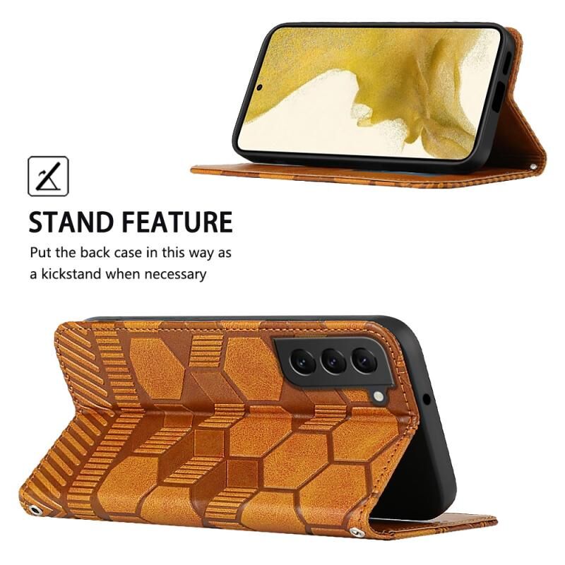 Για Samsung Galaxy S22+ 5G Ποδόσφαιρο υφή μαγνητική δερμάτινη θήκη Flip τηλέφωνο (χακί)