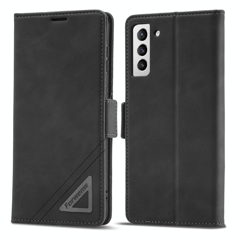 For Samsung Galaxy S22 5G Forwenw Dual-side Buckle Leather Phone Case(Black) (Forwenw)