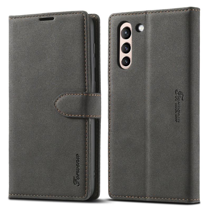 For Samsung Galaxy S22+ 5G Forwenw F1 Series Matte Strong Magnetism Leather Phone Case(Black) (Forwenw)