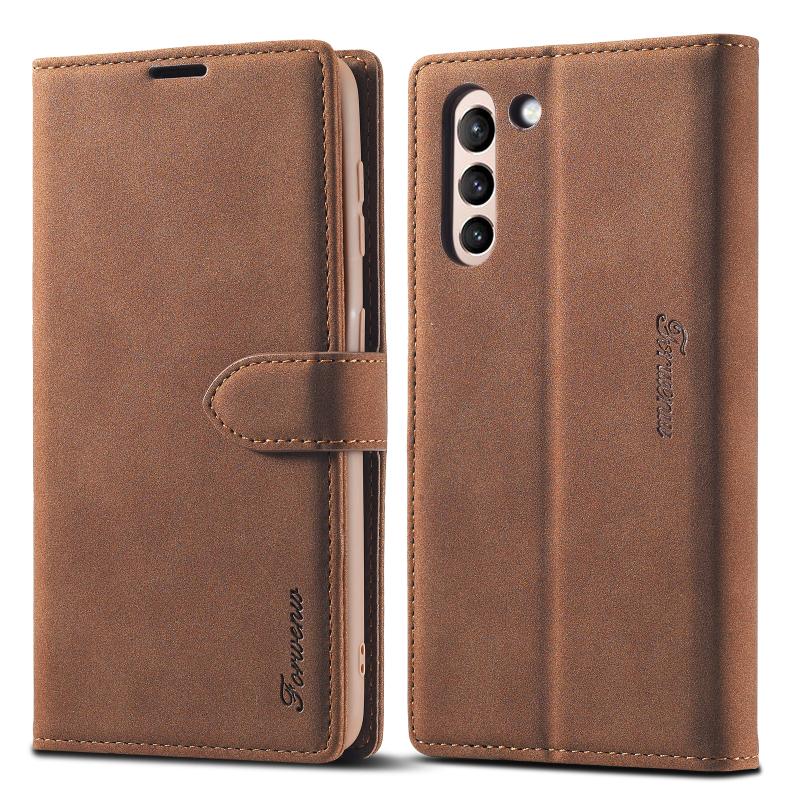 For Samsung Galaxy S22 5G Forwenw F1 Series Matte Strong Magnetism Leather Phone Case(Brown) (Forwenw)