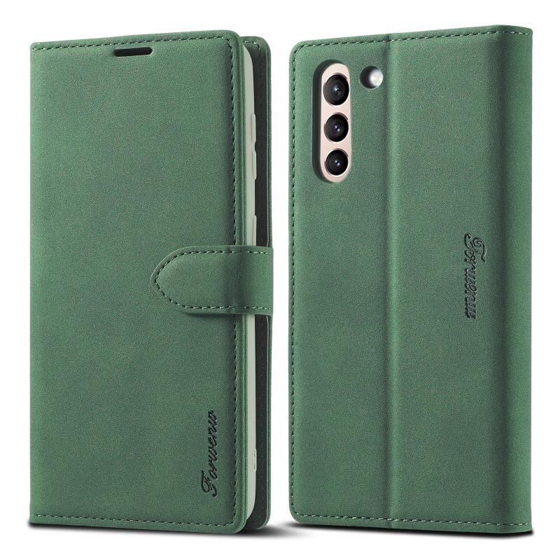For Samsung Galaxy S22+ 5G Forwenw F1 Series Matte Strong Magnetism Leather Phone Case(Green) (Forwenw)