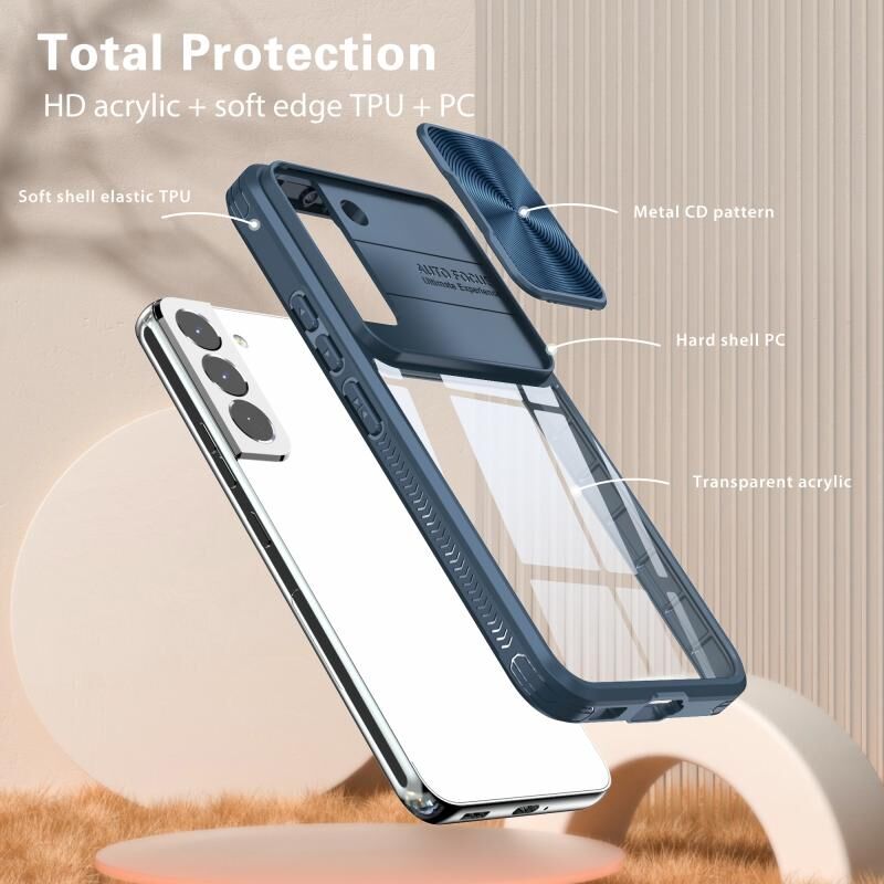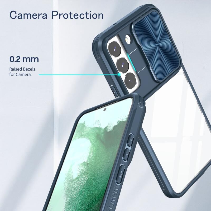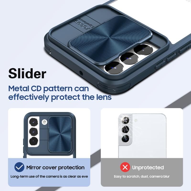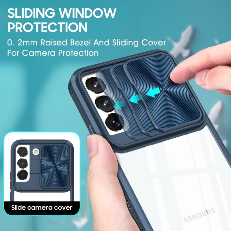 For Samsung Galaxy S22 5G Full Body Sliding Camshield Phone Case(Navy Blue)