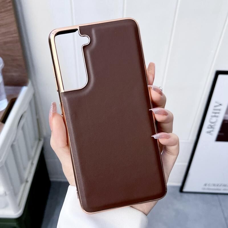 Θήκη τηλεφώνου Samsung Galaxy S22 5G από γνήσιο δέρμα, σειρά Xiaoya, νανο-επίχρυση (Καφές)