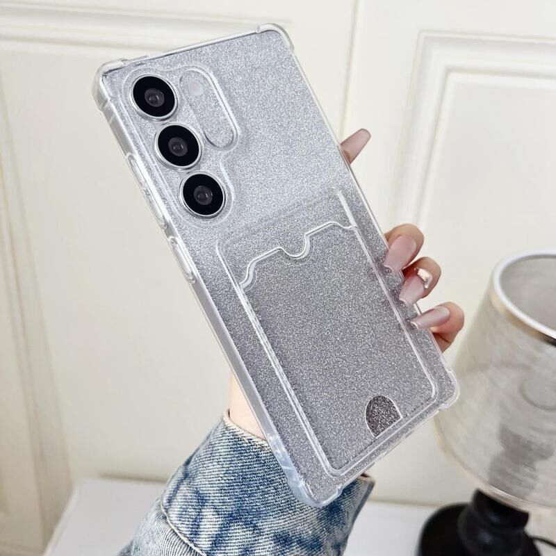Θήκη τηλεφώνου TPU με κάρτες για Samsung Galaxy S22+ 5G, διαφανής με γυαλιστερό επιμετάλλωση σε διαβαθμισμένα χρώματα.