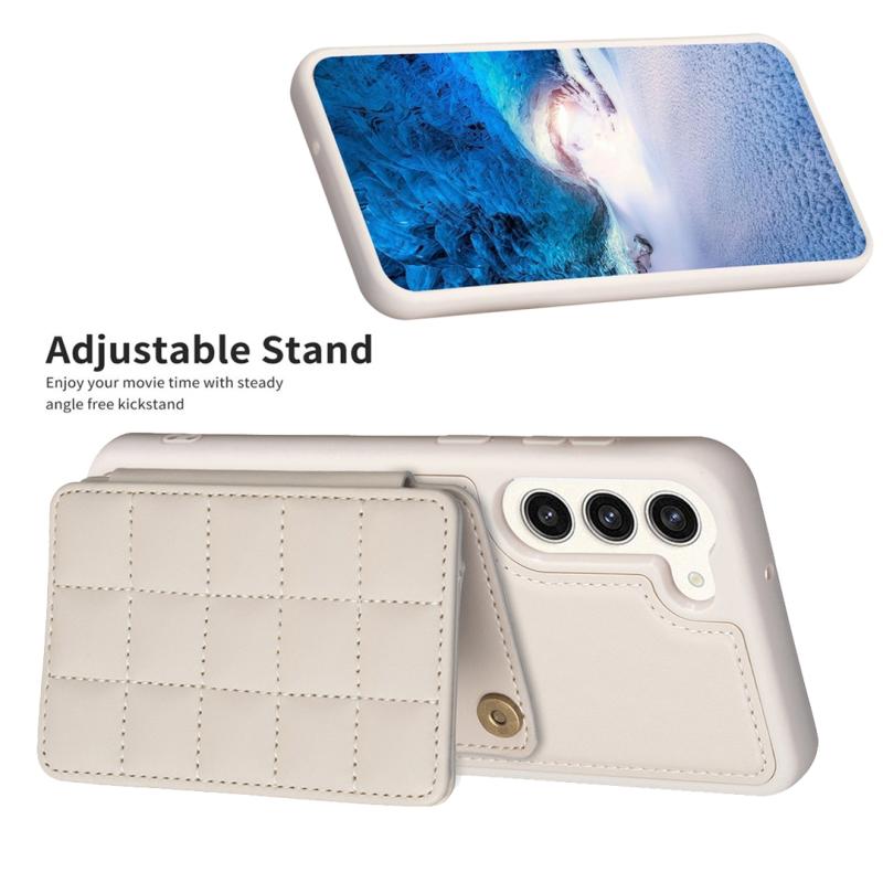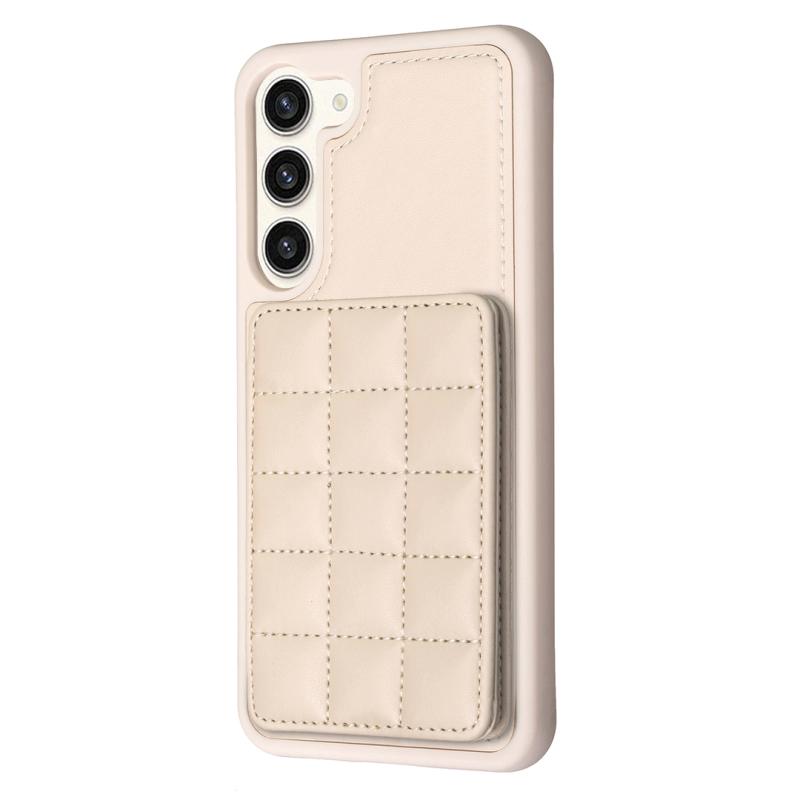 For Samsung Galaxy S22+ 5G Grid Card Slot Holder Phone Case(Beige)