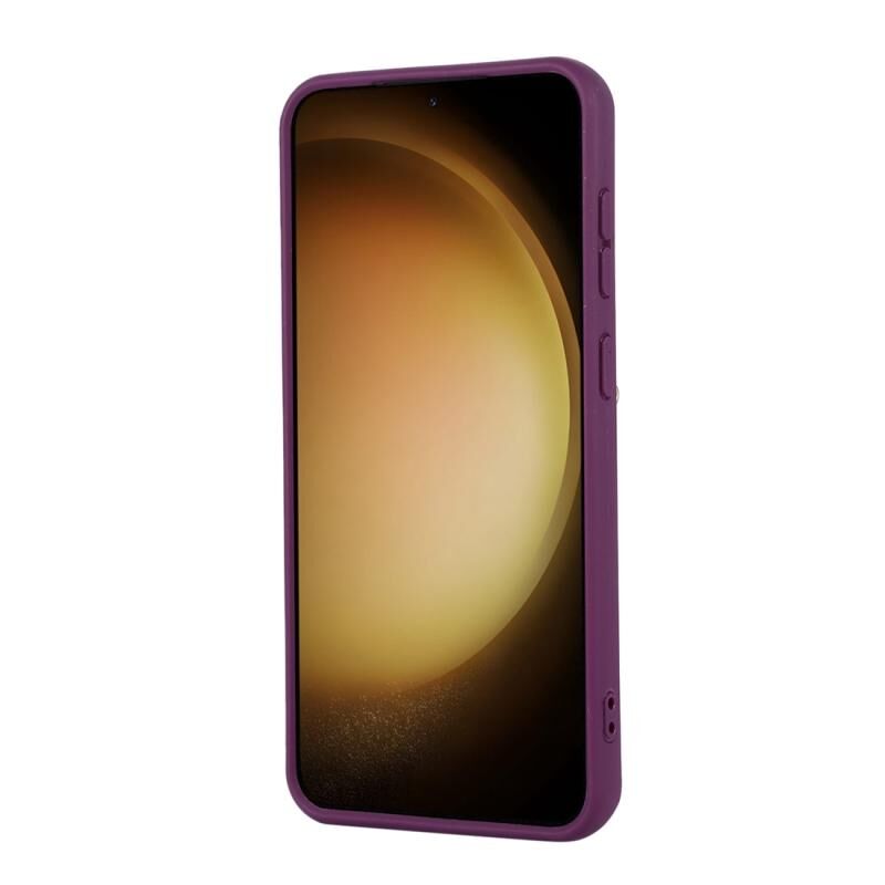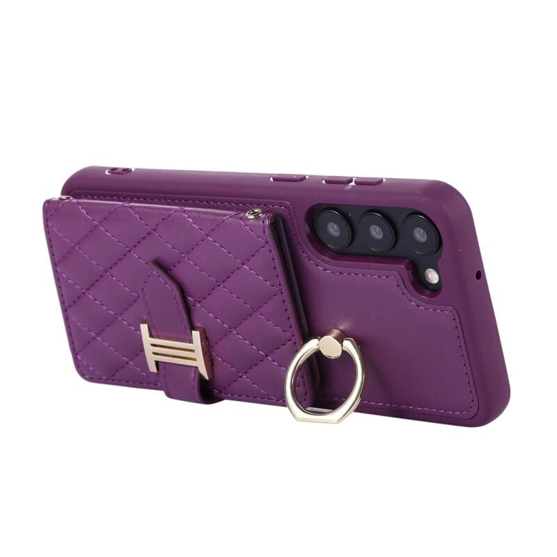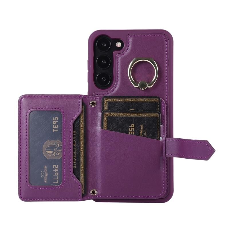 Για Samsung Galaxy S22 5G Οριζόντια κάρτα τσάντα δαχτυλίδι τσάντα κάτοχος υπόθεση τηλεφώνου με διπλό κορδόνι (σκούρο μωβ)