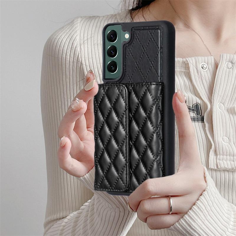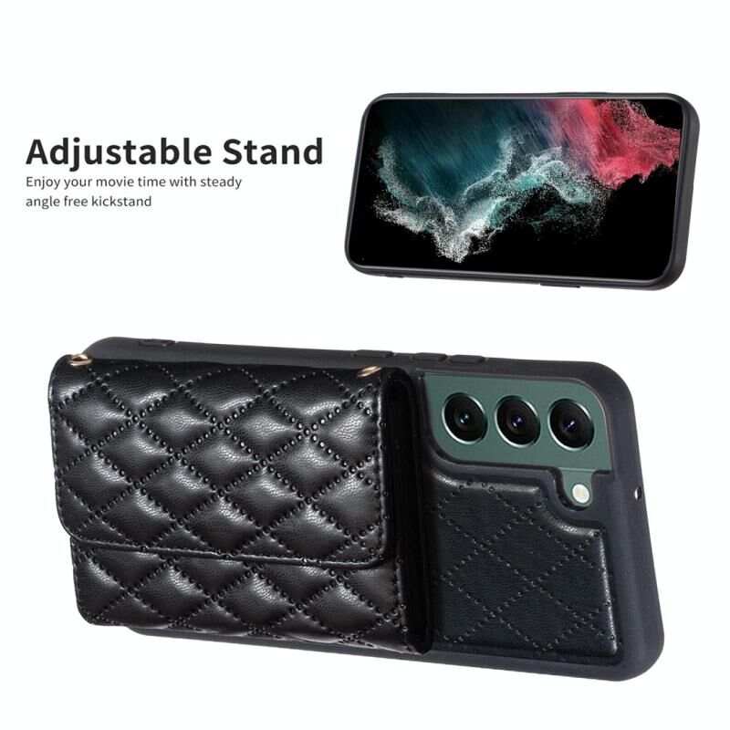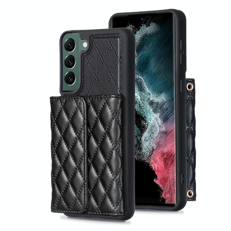 Θήκη τηλεφώνου Samsung Galaxy S22+ 5G Οριζόντια, Δερμάτινη με Ρομβικό Σχέδιο (Μαύρο)