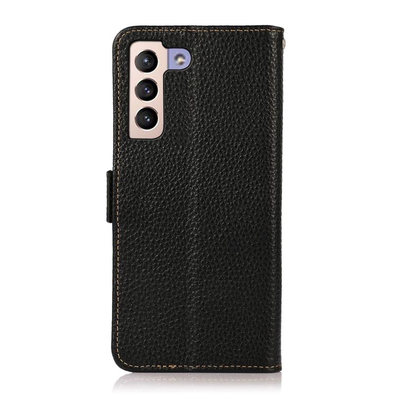 For Samsung Galaxy S22+ 5G KHAZNEH Side-Magnetic Litchi Genuine Leather RFID Phone Case(Black)