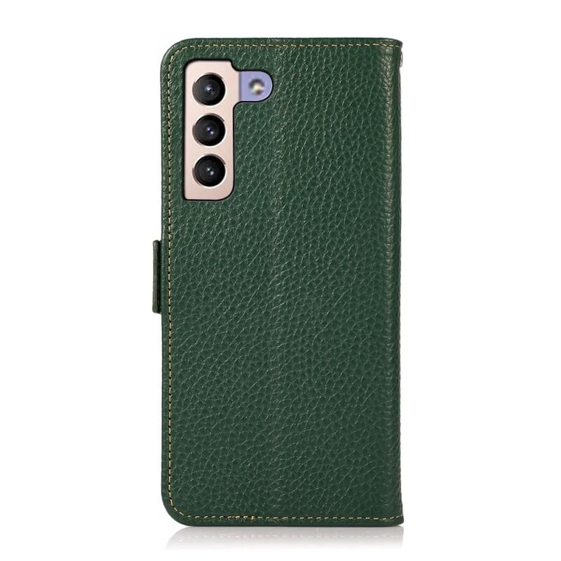 Θήκη κινητού τηλεφώνου Samsung Galaxy S22 5G KHAZNEH με μαγνητικό κλείσιμο, από γνήσιο δέρμα Litchi και προστασία RFID (Μαύρο)