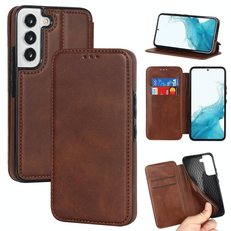 Για Samsung Galaxy S22 5G Ιππότης μαγνητική αναρρόφηση δερμάτινη θήκη τηλεφώνου (καφέ)