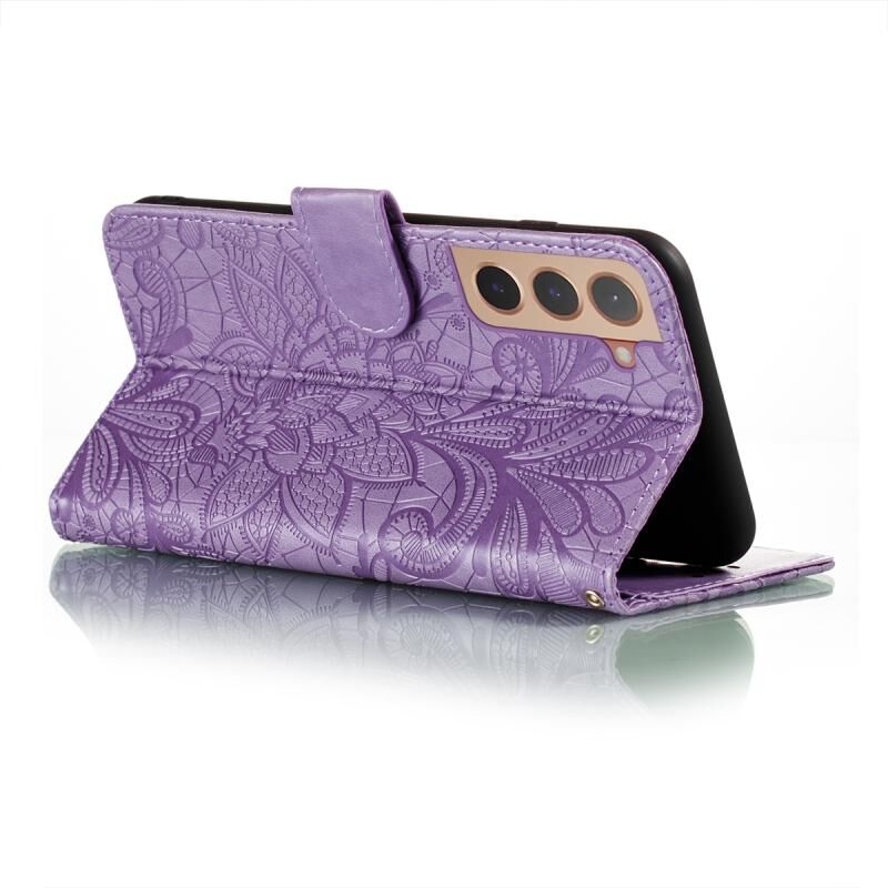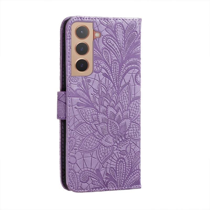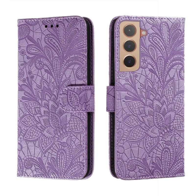 Για Samsung Galaxy S22+ 5G Lace Flower Δερμάτινη θήκη τηλεφώνου με θήκη & υποδοχές για κάρτες & πορτοφόλι & κορνίζα φωτογραφιών (μωβ)
